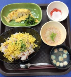 昼食は桜寿司と貝のお吸い物などで、ひな祭りにちなんだご馳走を楽しまれました。