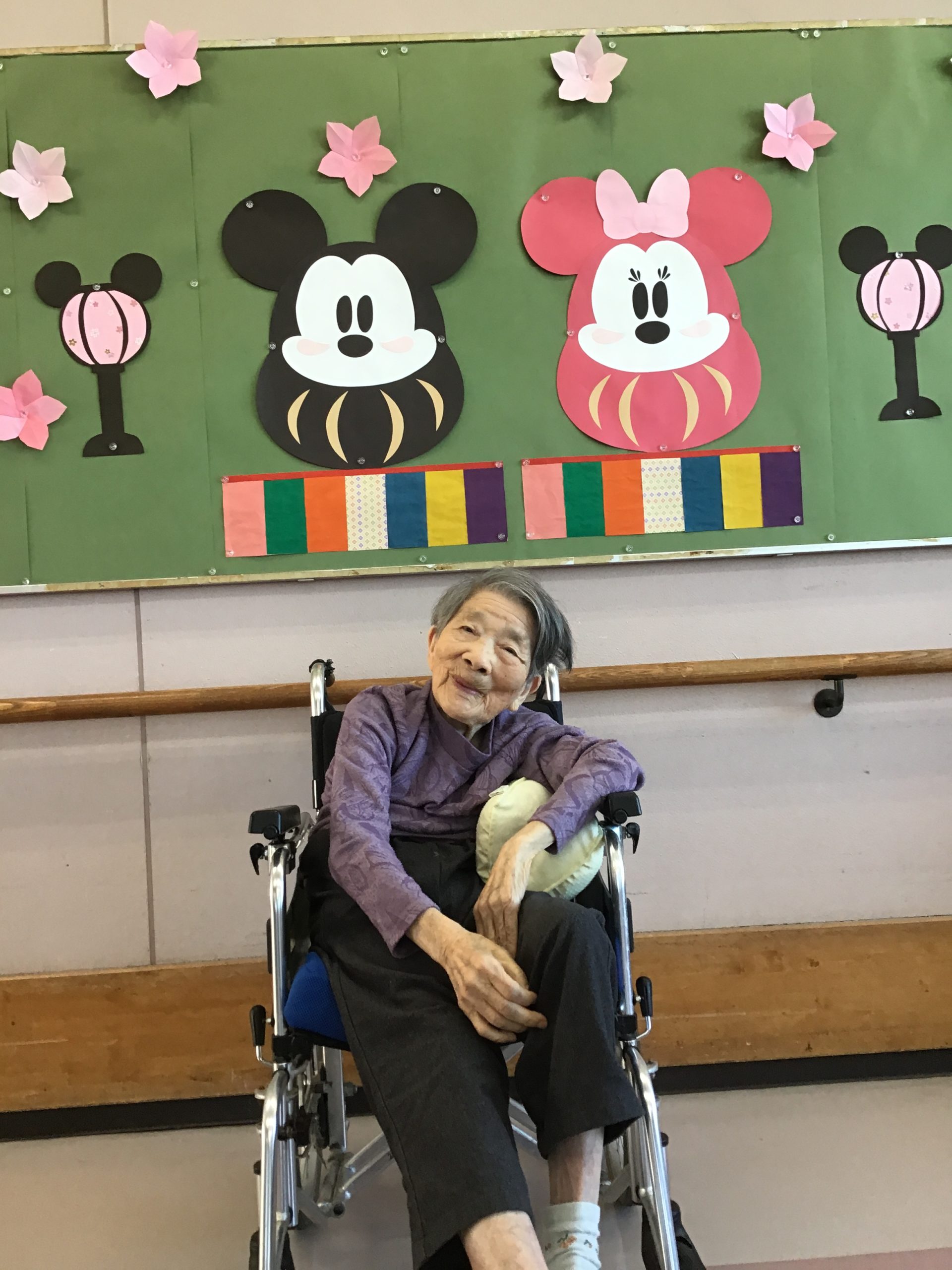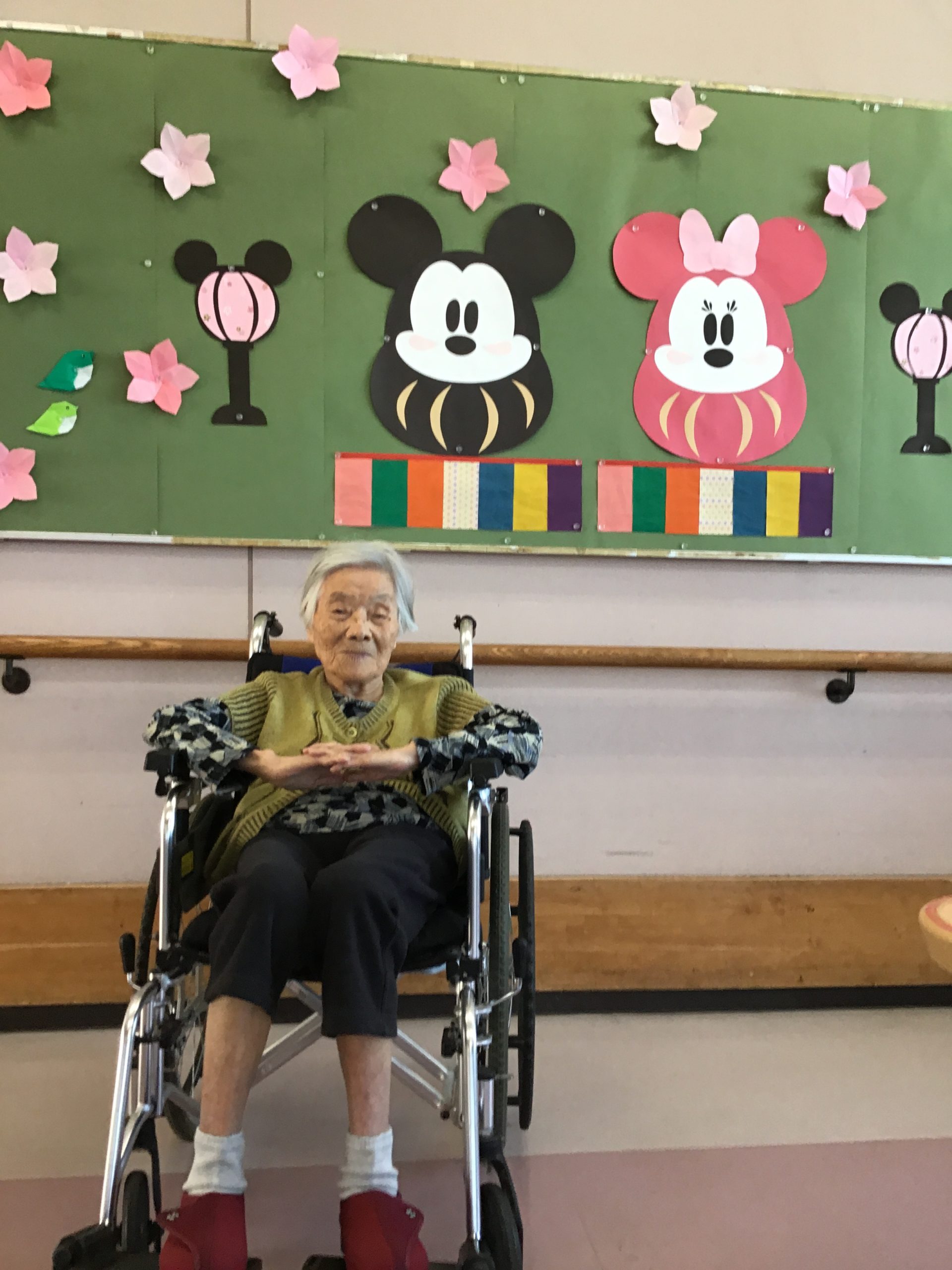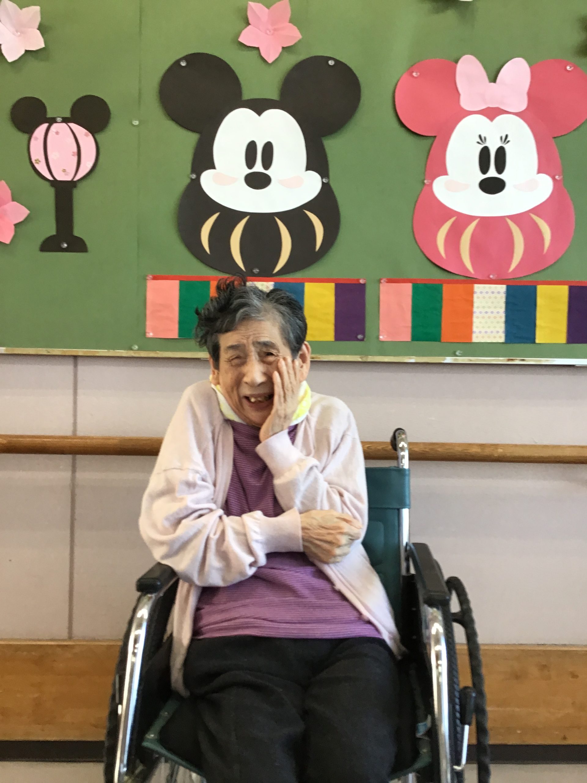 特養です。3月3日と言えばひな祭りですね!壁画のひな祭りと記念撮影です。皆さん笑顔が素敵です。 🙂