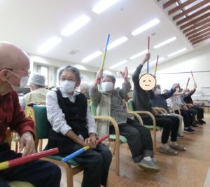 棒体操、ラジオ体操、嚥下体操などいろいろな体操をしています。