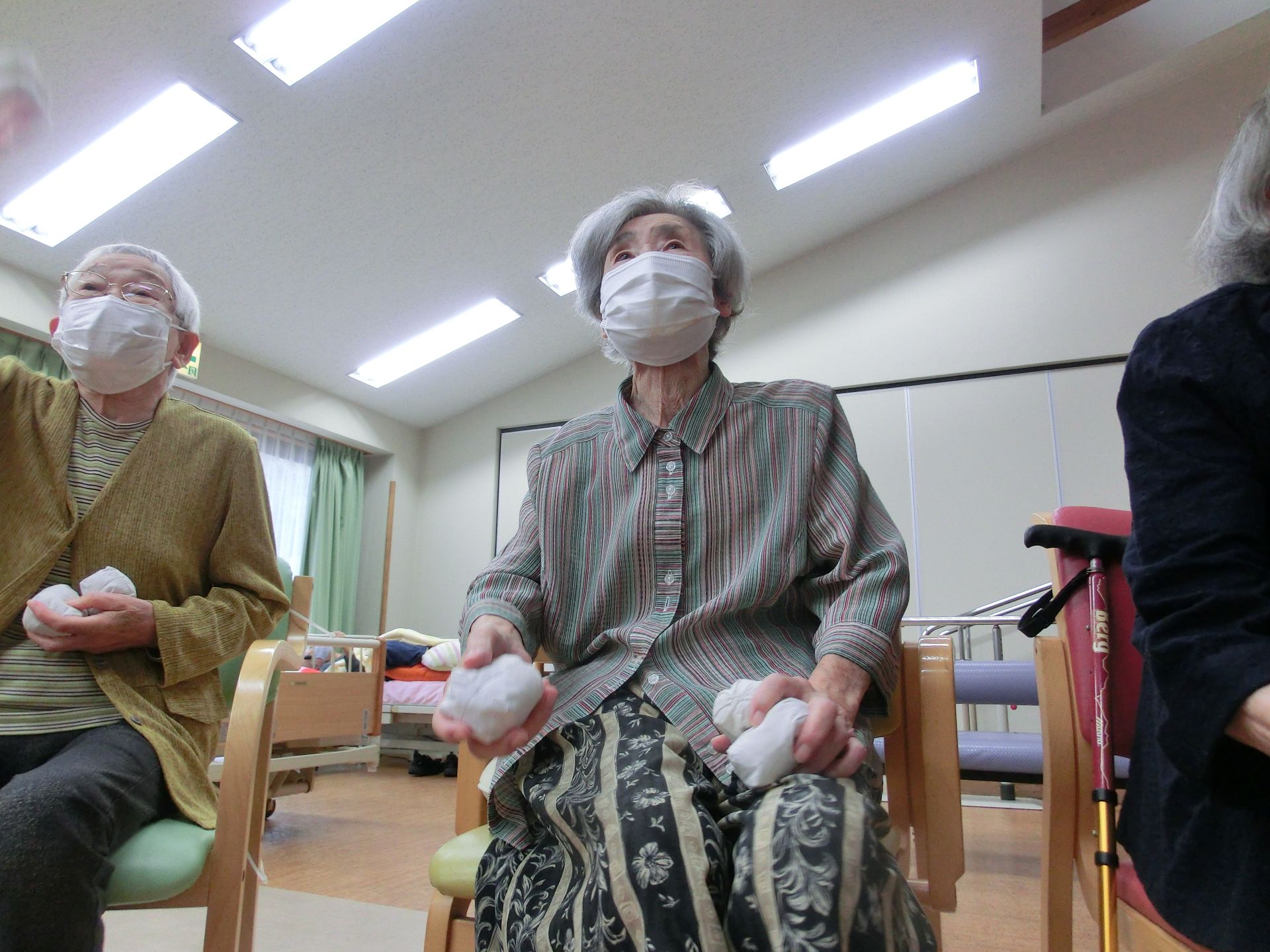 たくさんの利用者様の中に、ピンポン玉を持っている方が一人います・・・・。